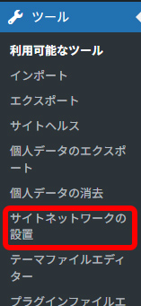 これでWordPressの管理画面にログインすると、サイドバーのツール内に サイトネットワークの設置 という項目が追加されているかと思います。