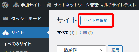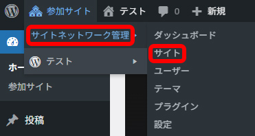 管理画面左上の 参加サイト > サイトネットワーク管理 > サイト を選択します。