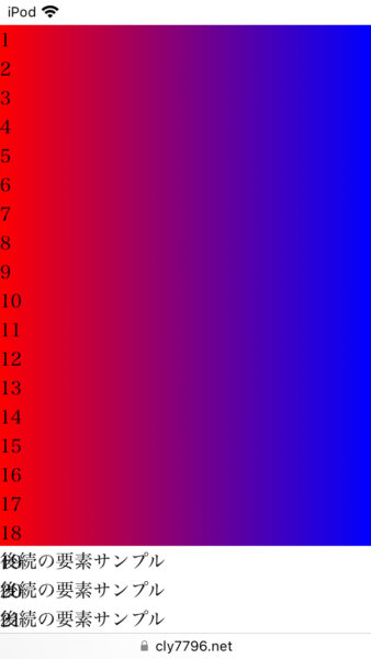 この場合はアドレスバーなどが表示された状態を基準にするので、アドレスバーが表示されている場合は画面高さぴったりに要素が表示されます。