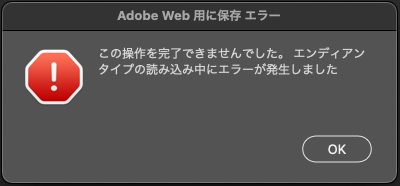 すでに公開されているサイトの一部画像(WebP)をPNGに変換して別途活用したい、ということをやりたかったのですが、Photoshopで開いてWeb用に保存をしようとすると以下のようなエラーになりました。